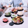– Compact op te bergen: de verschillende kommen passen mét deksel in elkaar.