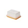 De serveerschaal van de botervloot is aan beide kanten te gebruiken. Een standaard pakje boter van 250 gram past precies aan de platte kant en een opgerolde boter of losse landboter aan de verzonken kant. De boter blijft vers, neemt geen vreemde geurtjes op uit de koelkast, blijft in vorm en je vingers blijven schoon bij het verwijderen van de boter. Past in bijna elke koelkastdeur. De serveerschaal is aan twee kanten te gebruiken. De platte kant voor stukjes boter met 250 g. De verzonken zijde voor rolboter of losse landboter.