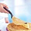 • Asymmetrische vorm, met licht afgeronde randen, om grote en delicate stukken om te draaien of te serveren zonder deze te breken, zoals visfilets, hamburgers, pancakes, spiegeleieren …