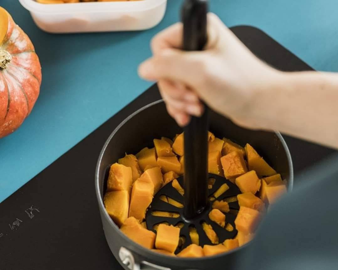 • Specifiek design zodat er geen klonters of voedselresten tussen de bogen blijven steken zoals bij een klassieke klopper.
