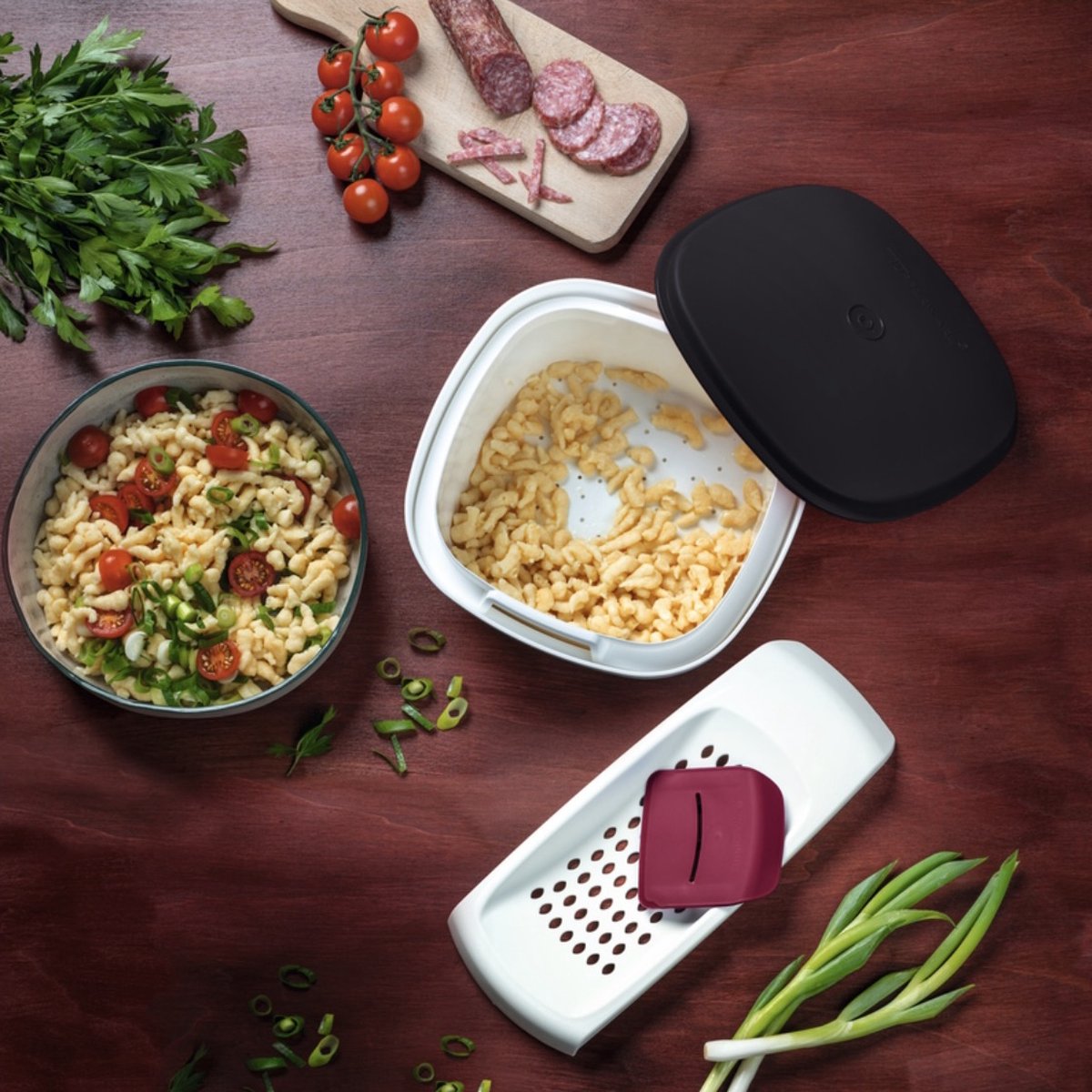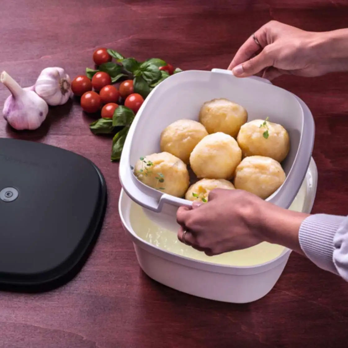 Het Serveerwonder is superveelzijdig: voor het koken, pocheren, ontdooien, uitlekken, afgieten, serveren en bewaren van voedingswaren.